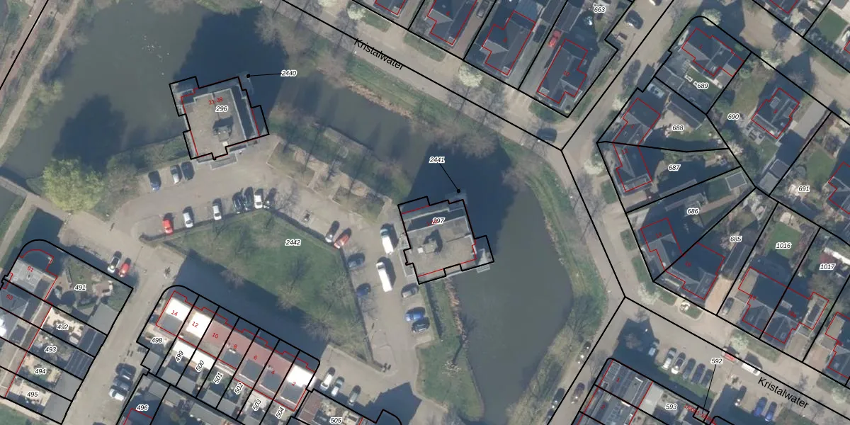 Het perceel waarop het adres ligt is HTN04-H-297. De afkorting 'HTN04' staat voor kadastrale gemeente Houten. Het perceel is 288 m² groot. Dat is kleiner dan de gemiddelde perceeloppervlakte in Houten, dat op 2873 m² ligt. Het grootste perceel in de kadastrale gemeente is 45,3 ha. Het kleinste perceel heeft een oppervlakte van 0 m². Op het perceel zijn 10 adressen aanwezig. De laatste wijziging in het de Basisregistratie Kadaster (BRK) was op 09-09-2009.