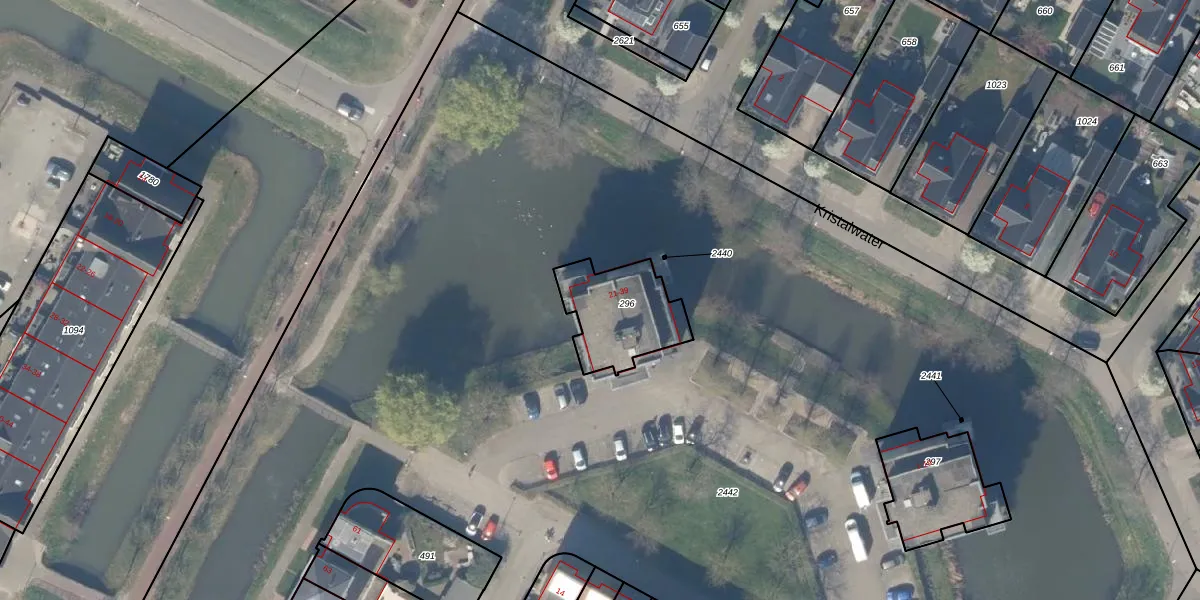 Het perceel waarop het adres ligt is HTN04-H-296. De afkorting 'HTN04' staat voor kadastrale gemeente Houten. Het perceel is 288 m² groot. Dat is kleiner dan de gemiddelde perceeloppervlakte in Houten, dat op 2873 m² ligt. Het grootste perceel in de kadastrale gemeente is 45,3 ha. Het kleinste perceel heeft een oppervlakte van 0 m². Op het perceel liggen in totaal 10 adressen. De laatste wijziging in het de Basisregistratie Kadaster (BRK) was op 09-09-2009.