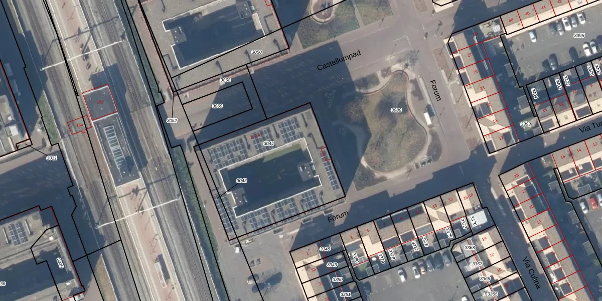 Forum 105 is gelegen op kadastraal perceel HTN04B3044. Deze kadastrale aanduiding is uniek en wordt gebruikt door het Kadaster om eigendomsrechten en andere zakelijke rechten vast te leggen. Het perceel maakt onderdeel uit van de kadastrale gemeente Houten.