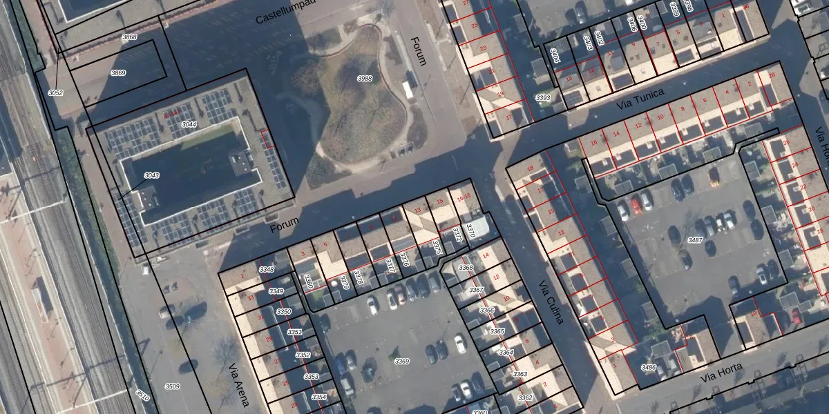 Het perceel waarop Forum 13 staat heeft een oppervlakte van 95 m². Dit is een klein perceel. De perceeloppervlakte wordt geregistreerd door het Kadaster. Gedetailleerde informatie over de maten van dit perceel kunt u vinden in het rapport Kadastrale kaart met maatvoering van Forum 13.