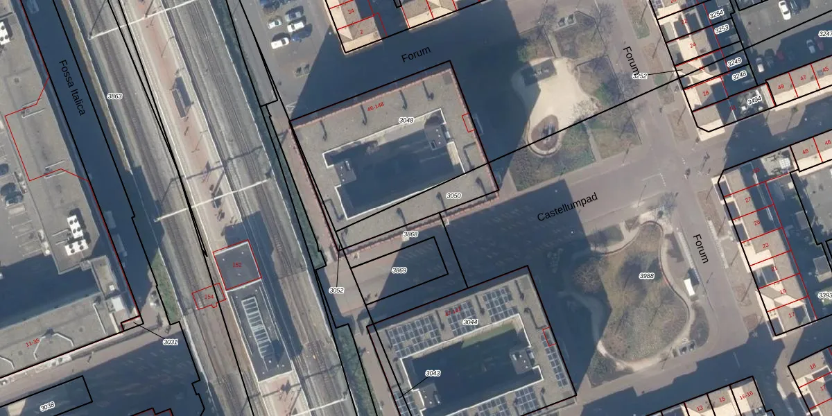 Forum 48 is gelegen op kadastraal perceel HTN04B3050. Deze kadastrale aanduiding is uniek en wordt gebruikt door het Kadaster om eigendomsrechten en andere zakelijke rechten vast te leggen. Het perceel maakt onderdeel uit van de kadastrale gemeente Houten.