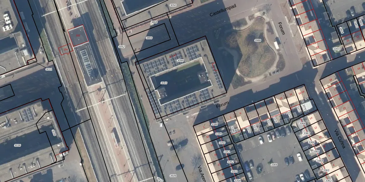 Forum 57 is gelegen op kadastraal perceel HTN04B3044. Deze kadastrale aanduiding is uniek en wordt gebruikt door het Kadaster om eigendomsrechten en andere zakelijke rechten vast te leggen. Het perceel maakt onderdeel uit van de kadastrale gemeente Houten.