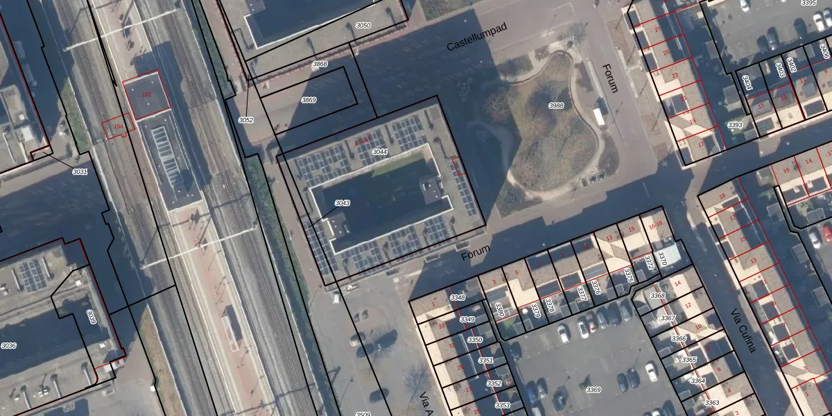 Forum 61 is gelegen op kadastraal perceel HTN04B3044. Deze kadastrale aanduiding is uniek en wordt gebruikt door het Kadaster om eigendomsrechten en andere zakelijke rechten vast te leggen. Het perceel maakt onderdeel uit van de kadastrale gemeente Houten.