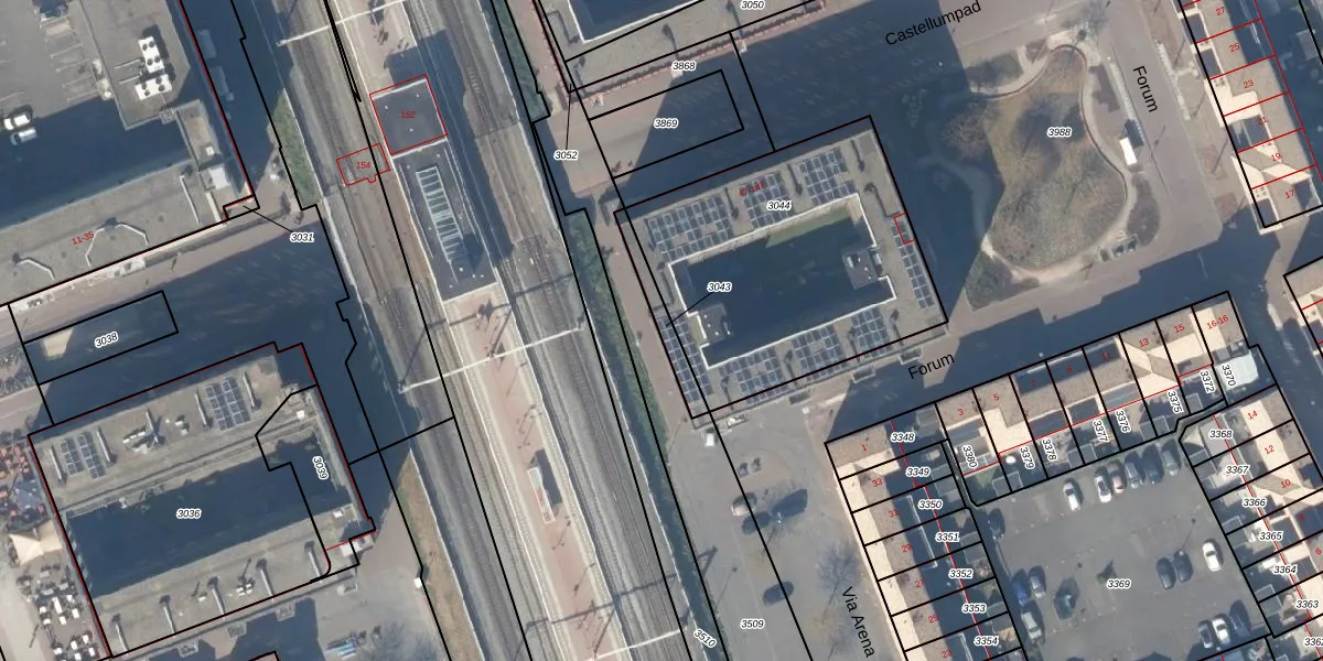 Forum 69 is gelegen op kadastraal perceel HTN04B3043. Deze kadastrale aanduiding is uniek en wordt gebruikt door het Kadaster om eigendomsrechten en andere zakelijke rechten vast te leggen. Het perceel maakt onderdeel uit van de kadastrale gemeente Houten.
