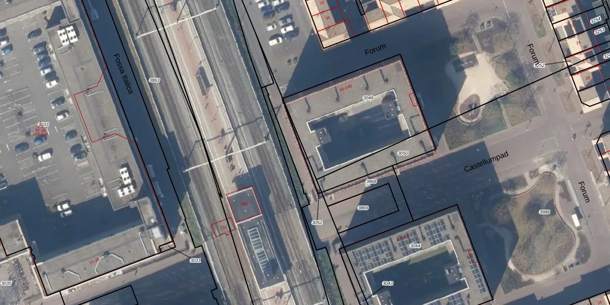 Forum 70 is gelegen op kadastraal perceel HTN04B3052. Deze kadastrale aanduiding is uniek en wordt gebruikt door het Kadaster om eigendomsrechten en andere zakelijke rechten vast te leggen. Het perceel maakt onderdeel uit van de kadastrale gemeente Houten.