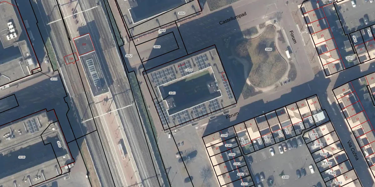 Forum 77 is gelegen op kadastraal perceel HTN04B3044. Deze kadastrale aanduiding is uniek en wordt gebruikt door het Kadaster om eigendomsrechten en andere zakelijke rechten vast te leggen. Het perceel maakt onderdeel uit van de kadastrale gemeente Houten.