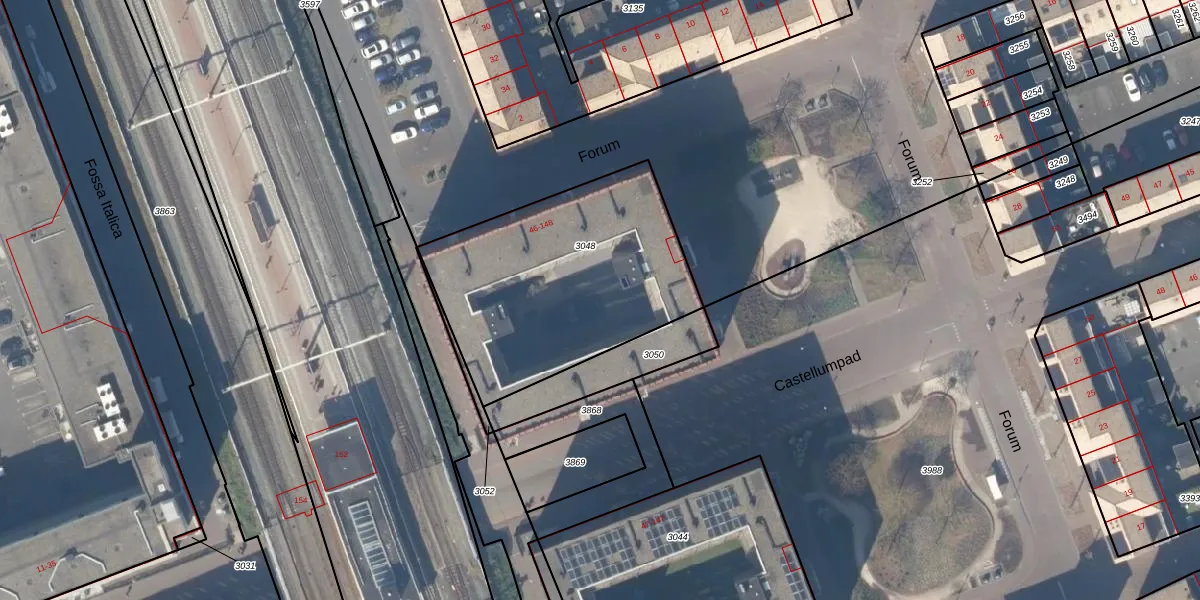 Forum 82 is gelegen op kadastraal perceel HTN04B3048. Deze kadastrale aanduiding is uniek en wordt gebruikt door het Kadaster om eigendomsrechten en andere zakelijke rechten vast te leggen. Het perceel maakt onderdeel uit van de kadastrale gemeente Houten.