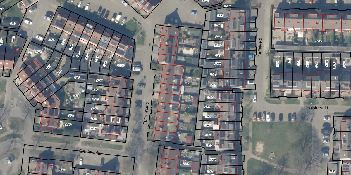 Futenweide 11 is gelegen op kadastraal perceel HTN04E918. Deze kadastrale aanduiding is uniek en wordt gebruikt door het Kadaster om eigendomsrechten en andere zakelijke rechten vast te leggen. Het perceel maakt onderdeel uit van de kadastrale gemeente Houten.