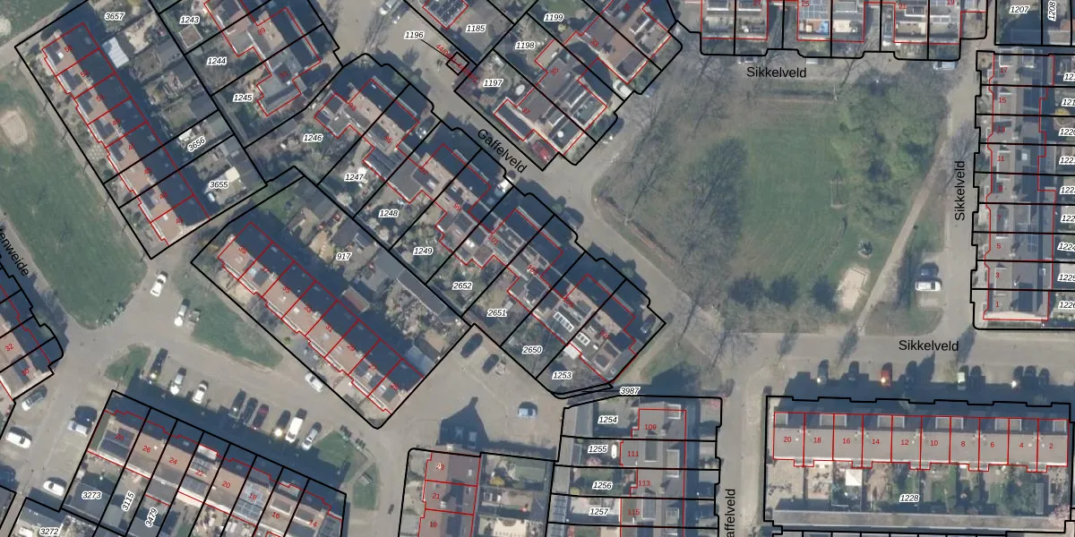 Gaffelveld 103 is gelegen op kadastraal perceel HTN04E2651. Deze kadastrale aanduiding is uniek en wordt gebruikt door het Kadaster om eigendomsrechten en andere zakelijke rechten vast te leggen. Het perceel maakt onderdeel uit van de kadastrale gemeente Houten.
