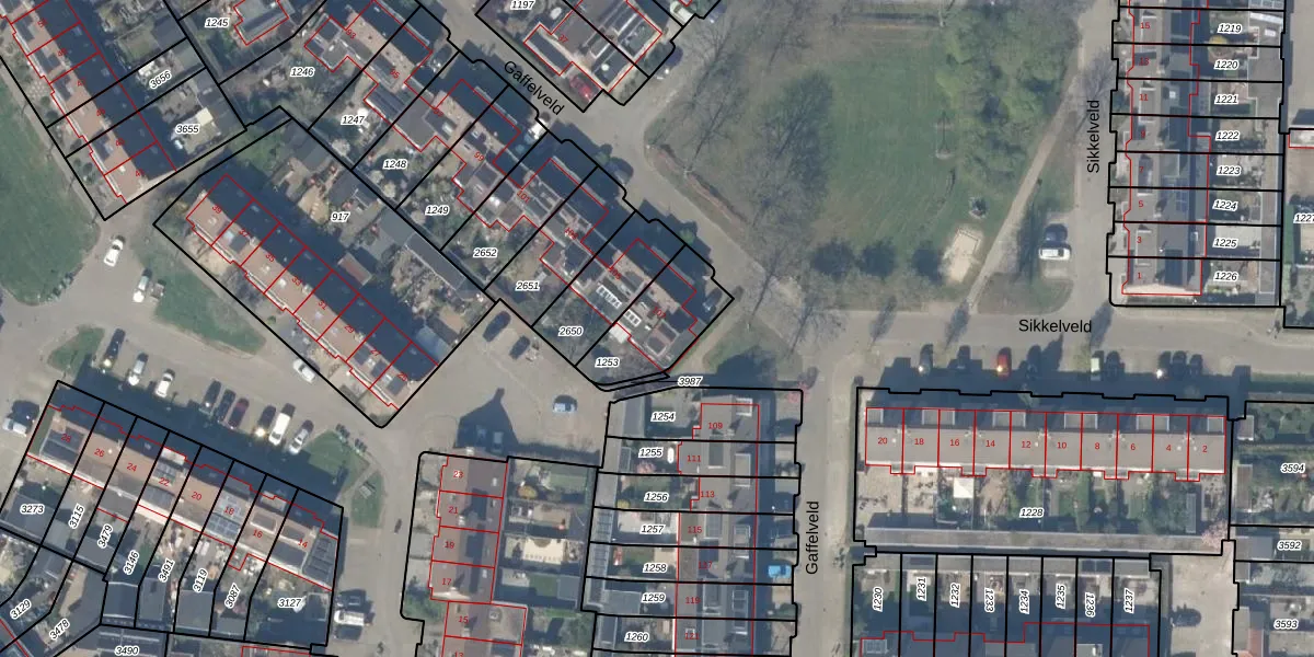 Gaffelveld 107 is gelegen op kadastraal perceel HTN04E1253. Deze kadastrale aanduiding is uniek en wordt gebruikt door het Kadaster om eigendomsrechten en andere zakelijke rechten vast te leggen. Het perceel maakt onderdeel uit van de kadastrale gemeente Houten.