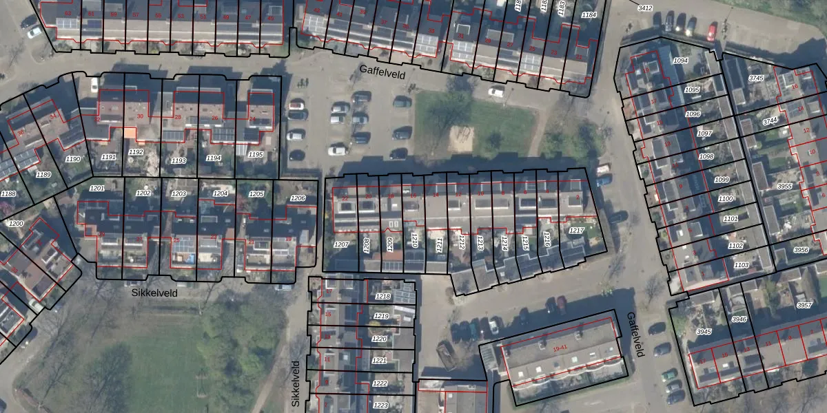 Gaffelveld 16 is gelegen op kadastraal perceel HTN04E1210. Deze kadastrale aanduiding is uniek en wordt gebruikt door het Kadaster om eigendomsrechten en andere zakelijke rechten vast te leggen. Het perceel maakt onderdeel uit van de kadastrale gemeente Houten.