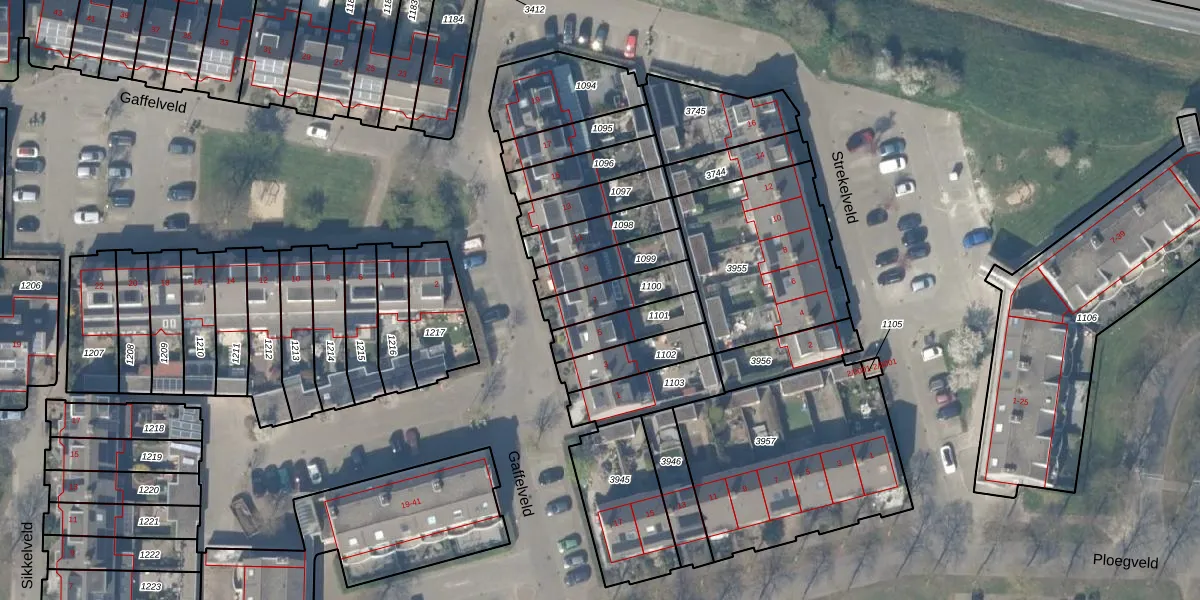 Gaffelveld 7 is gelegen op kadastraal perceel HTN04E1100. Deze kadastrale aanduiding is uniek en wordt gebruikt door het Kadaster om eigendomsrechten en andere zakelijke rechten vast te leggen. Het perceel maakt onderdeel uit van de kadastrale gemeente Houten.