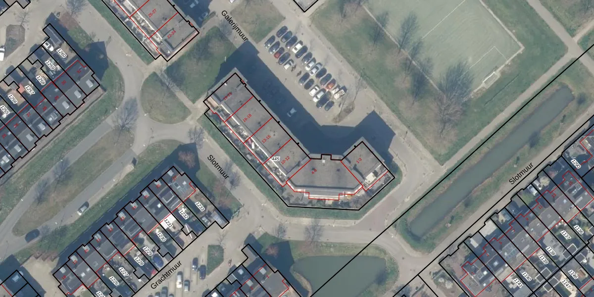 Galerijmuur 10 is gelegen op kadastraal perceel HTN04H445. Deze kadastrale aanduiding is uniek en wordt gebruikt door het Kadaster om eigendomsrechten en andere zakelijke rechten vast te leggen. Het perceel maakt onderdeel uit van de kadastrale gemeente Houten.