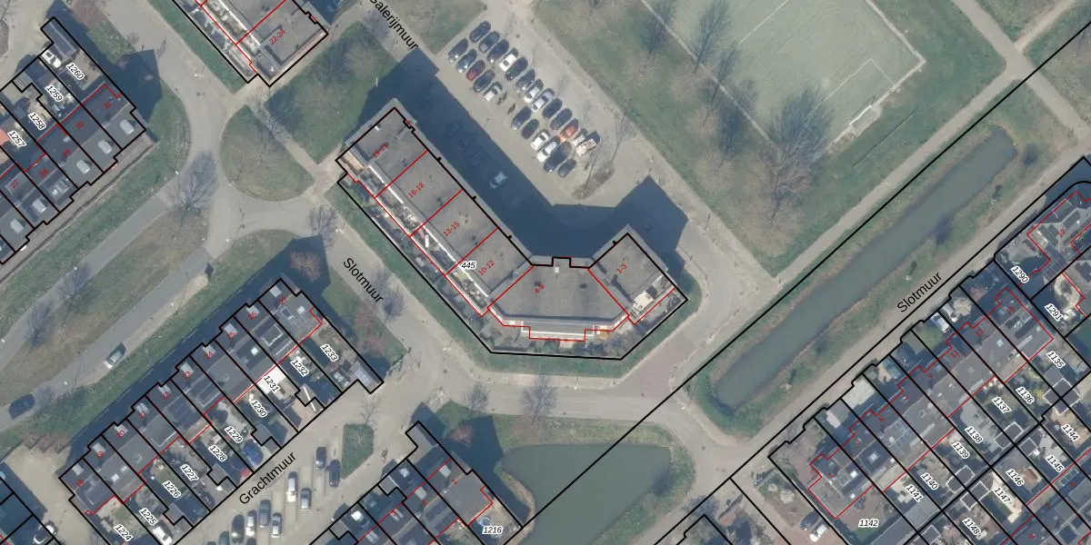 Het perceel waarop Galerijmuur 5 staat heeft een oppervlakte van 1177 m². Dit is een zeer groot perceel. De perceeloppervlakte wordt geregistreerd door het Kadaster. Gedetailleerde informatie over de maten van dit perceel kunt u vinden in het rapport Kadastrale kaart met maatvoering van Galerijmuur 5.