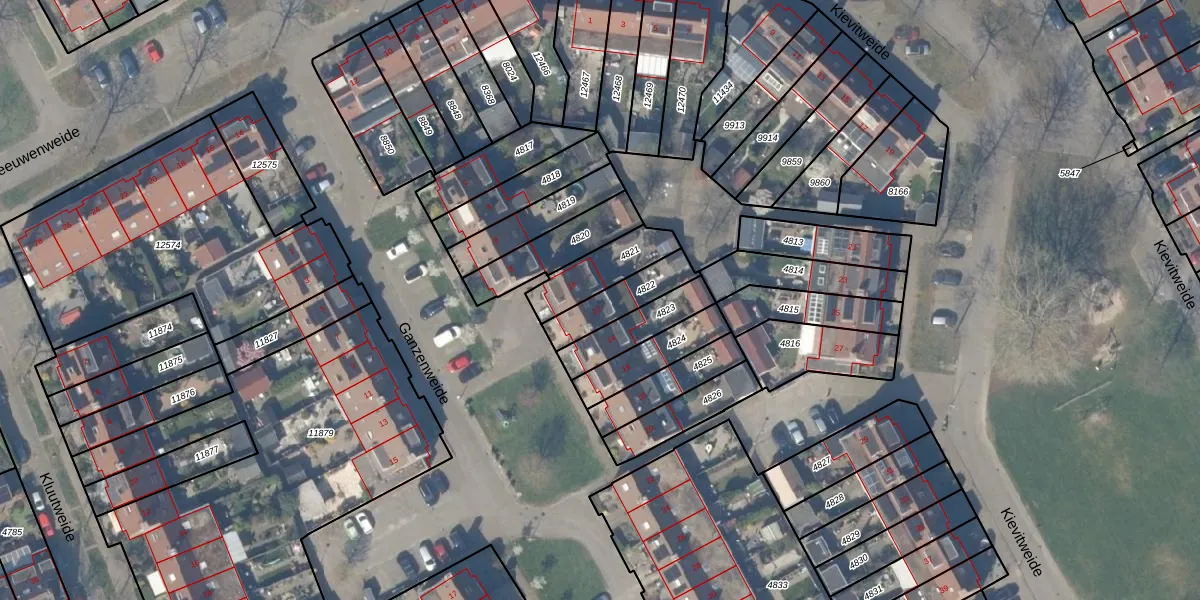 Ganzenweide 12 is gelegen op kadastraal perceel HTN04A4822. Deze kadastrale aanduiding is uniek en wordt gebruikt door het Kadaster om eigendomsrechten en andere zakelijke rechten vast te leggen. Het perceel maakt onderdeel uit van de kadastrale gemeente Houten.