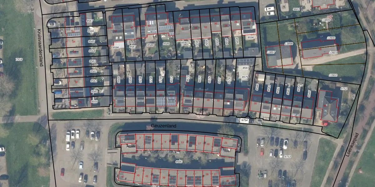 Gebruik de zoekbalk of klik op een perceel voor informatie over de adressen binnen dit perceel.