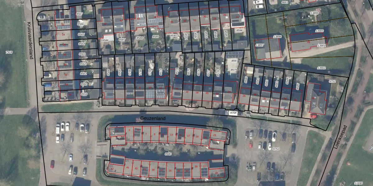 Geuzenland 16 is gelegen op kadastraal perceel HTN04A8575. Deze kadastrale aanduiding is uniek en wordt gebruikt door het Kadaster om eigendomsrechten en andere zakelijke rechten vast te leggen. Het perceel maakt onderdeel uit van de kadastrale gemeente Houten.