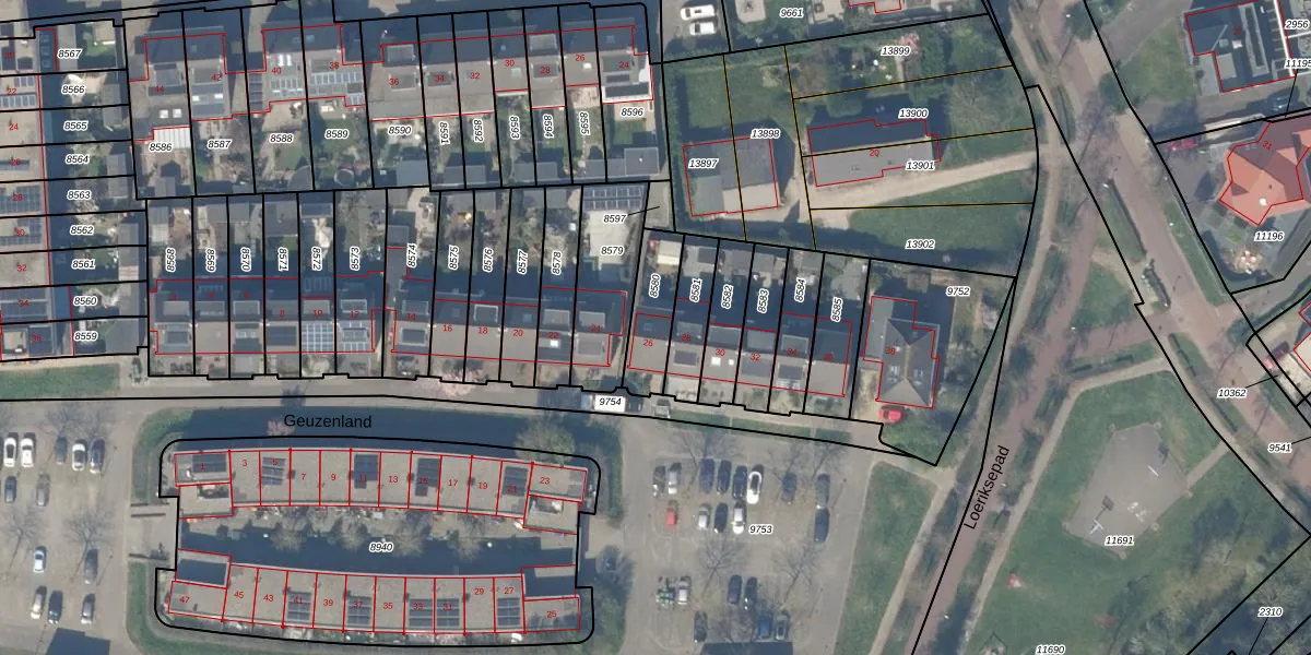Het perceel waarop Geuzenland 26 staat heeft een oppervlakte van 159 m². Dit is een middelgroot perceel. De perceeloppervlakte wordt geregistreerd door het Kadaster. Gedetailleerde informatie over de maten van dit perceel kunt u vinden in het rapport Kadastrale kaart met maatvoering van Geuzenland 26.