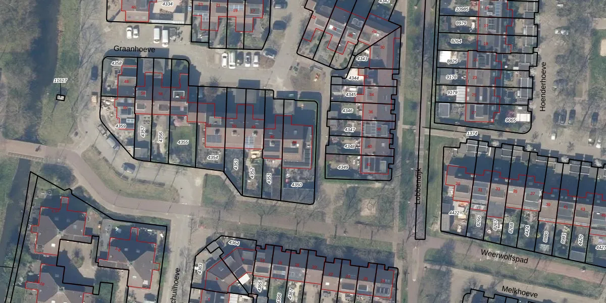 Het perceel waarop Graanhoeve 44 staat heeft een oppervlakte van 377 m². Dit is een groot perceel. De perceeloppervlakte wordt geregistreerd door het Kadaster. Gedetailleerde informatie over de maten van dit perceel kunt u vinden in het rapport Kadastrale kaart met maatvoering van Graanhoeve 44.