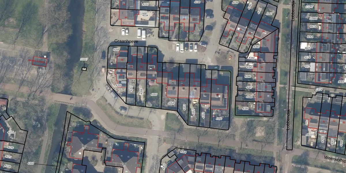 Het perceel waarop Graanhoeve 52 staat heeft een oppervlakte van 259 m². Dit is een middelgroot perceel. De perceeloppervlakte wordt geregistreerd door het Kadaster. Gedetailleerde informatie over de maten van dit perceel kunt u vinden in het rapport Kadastrale kaart met maatvoering van Graanhoeve 52.