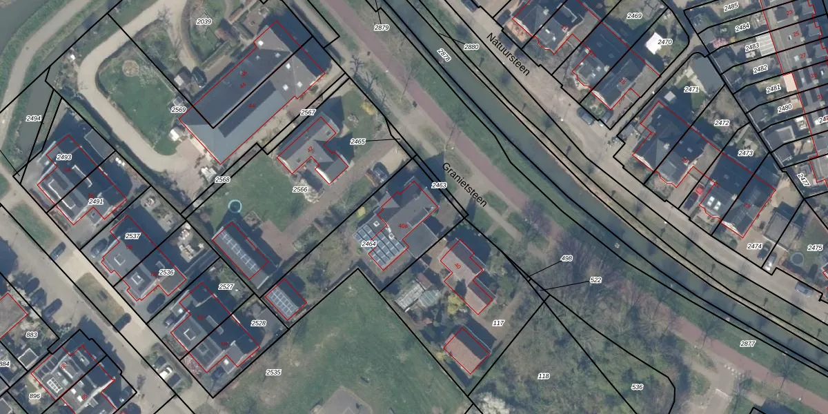 Granietsteen 40-a is gelegen op kadastraal perceel HTN04H2464. Deze kadastrale aanduiding is uniek en wordt gebruikt door het Kadaster om eigendomsrechten en andere zakelijke rechten vast te leggen. Het perceel maakt onderdeel uit van de kadastrale gemeente Houten.