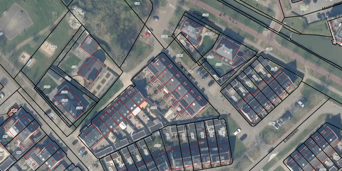 Het perceel waarop Granietsteen 8 staat heeft een oppervlakte van 2300 m². Dit is een zeer groot perceel. De perceeloppervlakte wordt geregistreerd door het Kadaster. Gedetailleerde informatie over de maten van dit perceel kunt u vinden in het rapport Kadastrale kaart met maatvoering van Granietsteen 8.