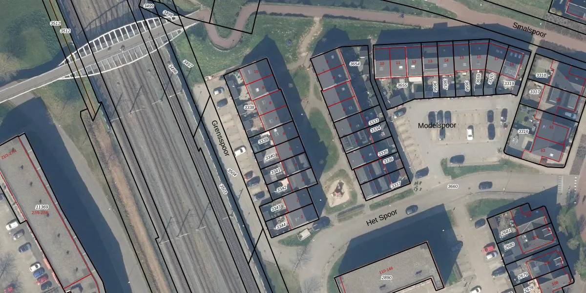 Het perceel waarop Grensspoor 5 staat heeft een oppervlakte van 94 m². Dit is een klein perceel. De perceeloppervlakte wordt geregistreerd door het Kadaster. Gedetailleerde informatie over de maten van dit perceel kunt u vinden in het rapport Kadastrale kaart met maatvoering van Grensspoor 5.