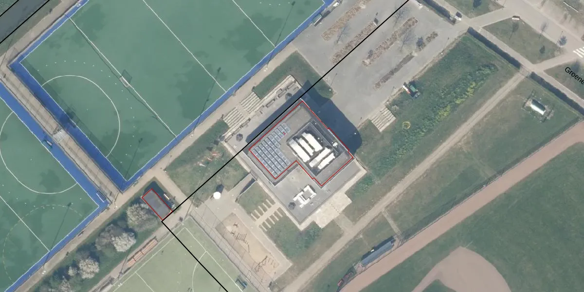 Het perceel waarop Groene Hoon 1 staat heeft een oppervlakte van 2,5 ha. Dit is een zeer groot perceel. De perceeloppervlakte wordt geregistreerd door het Kadaster. Gedetailleerde informatie over de maten van dit perceel kunt u vinden in het rapport Kadastrale kaart met maatvoering van Groene Hoon 1.