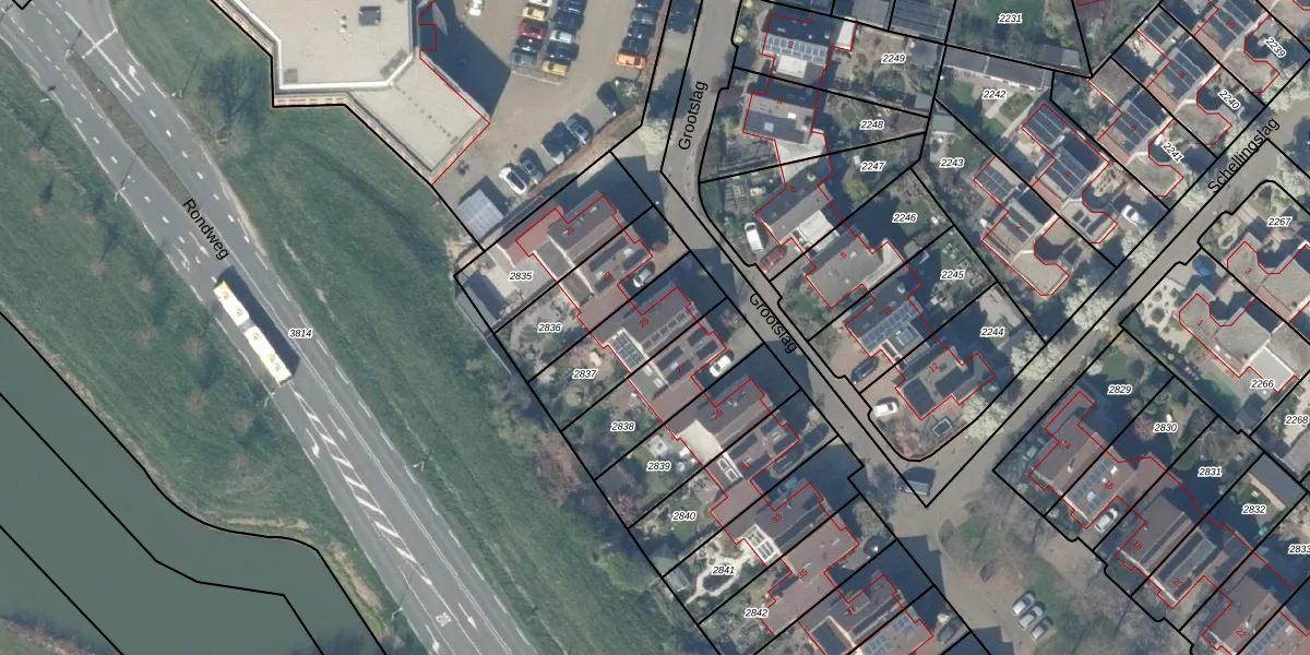 Grootslag 25 is gelegen op kadastraal perceel HTN04E2837. Deze kadastrale aanduiding is uniek en wordt gebruikt door het Kadaster om eigendomsrechten en andere zakelijke rechten vast te leggen. Het perceel maakt onderdeel uit van de kadastrale gemeente Houten.