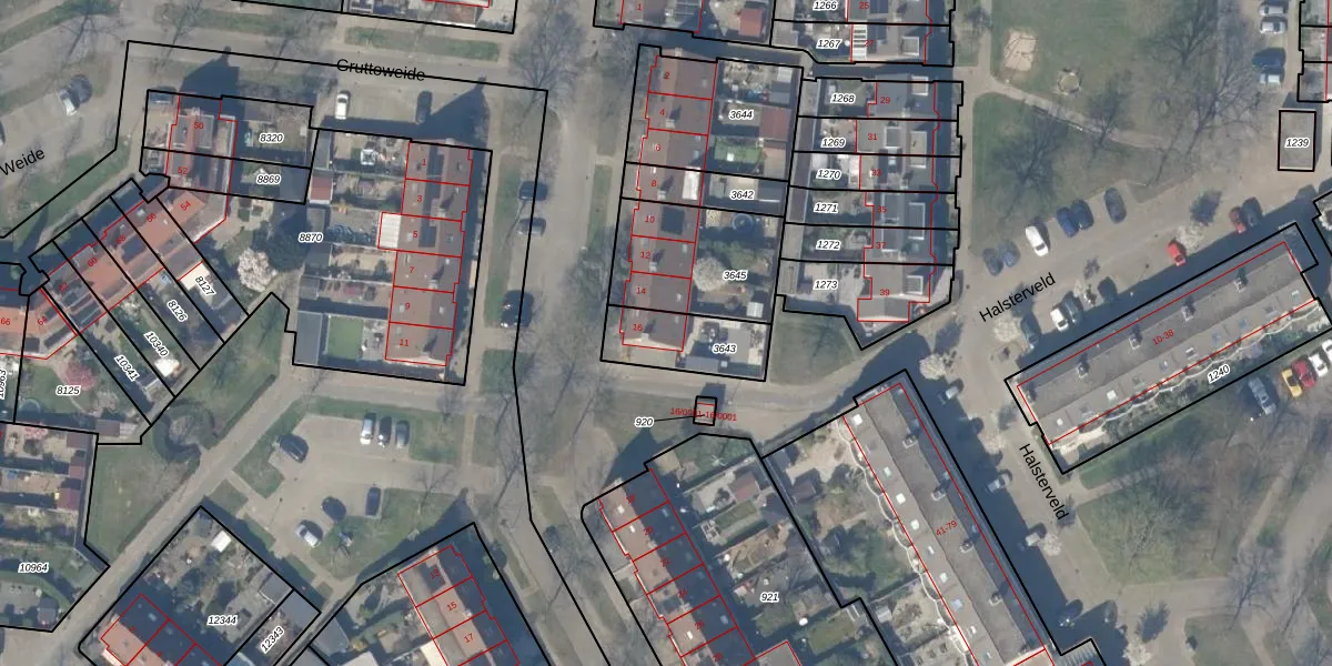 Gruttoweide 16 is gelegen op kadastraal perceel HTN04E3643. Deze kadastrale aanduiding is uniek en wordt gebruikt door het Kadaster om eigendomsrechten en andere zakelijke rechten vast te leggen. Het perceel maakt onderdeel uit van de kadastrale gemeente Houten.
