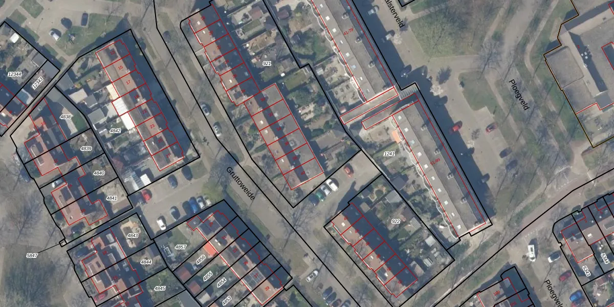 Gruttoweide 38 is gelegen op kadastraal perceel HTN04E921. Deze kadastrale aanduiding is uniek en wordt gebruikt door het Kadaster om eigendomsrechten en andere zakelijke rechten vast te leggen. Het perceel maakt onderdeel uit van de kadastrale gemeente Houten.