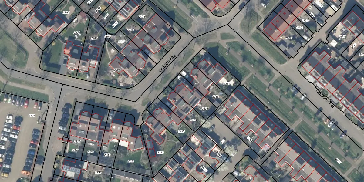 Het perceel waarop Guldenslag 21 staat heeft een oppervlakte van 255 m². Dit is een middelgroot perceel. De perceeloppervlakte wordt geregistreerd door het Kadaster. Gedetailleerde informatie over de maten van dit perceel kunt u vinden in het rapport Kadastrale kaart met maatvoering van Guldenslag 21.