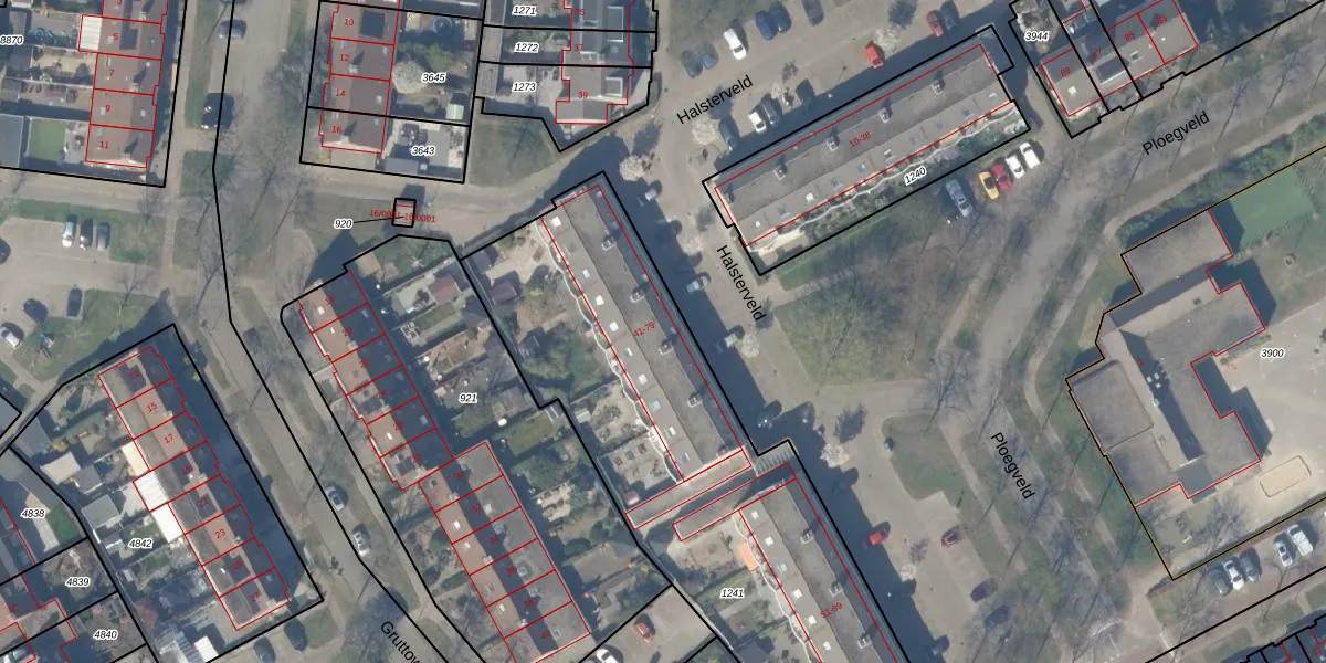 Het perceel waarop Halsterveld 45 staat heeft een oppervlakte van 2360 m². Dit is een zeer groot perceel. De perceeloppervlakte wordt geregistreerd door het Kadaster. Gedetailleerde informatie over de maten van dit perceel kunt u vinden in het rapport Kadastrale kaart met maatvoering van Halsterveld 45.