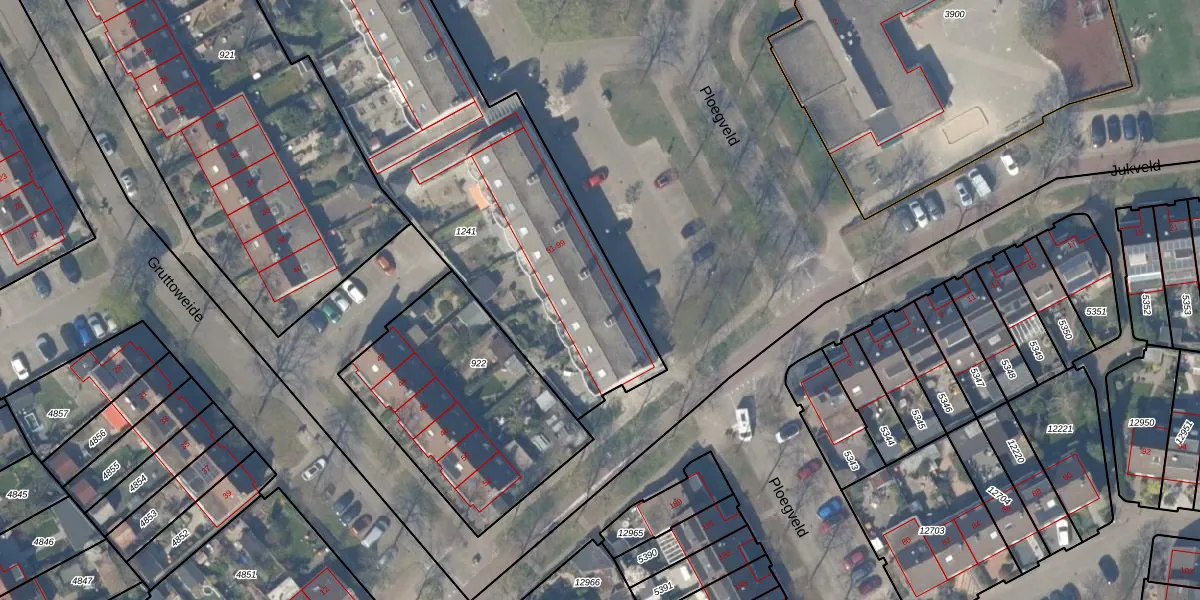 Het perceel waarop het adres ligt is HTN04-E-1241. De afkorting 'HTN04' staat voor kadastrale gemeente Houten. Het perceel is kleiner dan gemiddeld in Houten. Het perceel is 2360 m² groot, terwijl het gemiddelde ligt op 2872,02 m². Het grootste perceel in de kadastrale gemeente is 45,3 ha. Het kleinste perceel heeft een oppervlakte van 0 m². Op het perceel liggen in totaal 30 adressen. De huidige grenzen van het perceel zijn digitaal in de Basisregistratie Kadaster (BRK) geregistreerd op 06-02-2008.