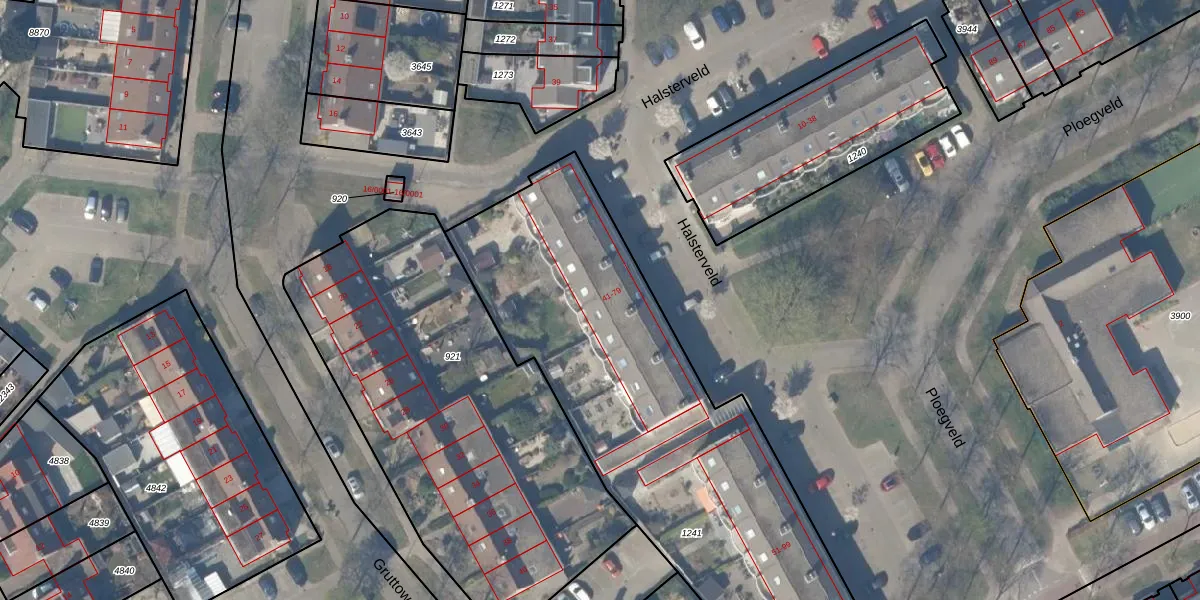 Het perceel waarop Halsterveld 69 staat heeft een oppervlakte van 2360 m². Dit is een zeer groot perceel. De perceeloppervlakte wordt geregistreerd door het Kadaster. Gedetailleerde informatie over de maten van dit perceel kunt u vinden in het rapport Kadastrale kaart met maatvoering van Halsterveld 69.