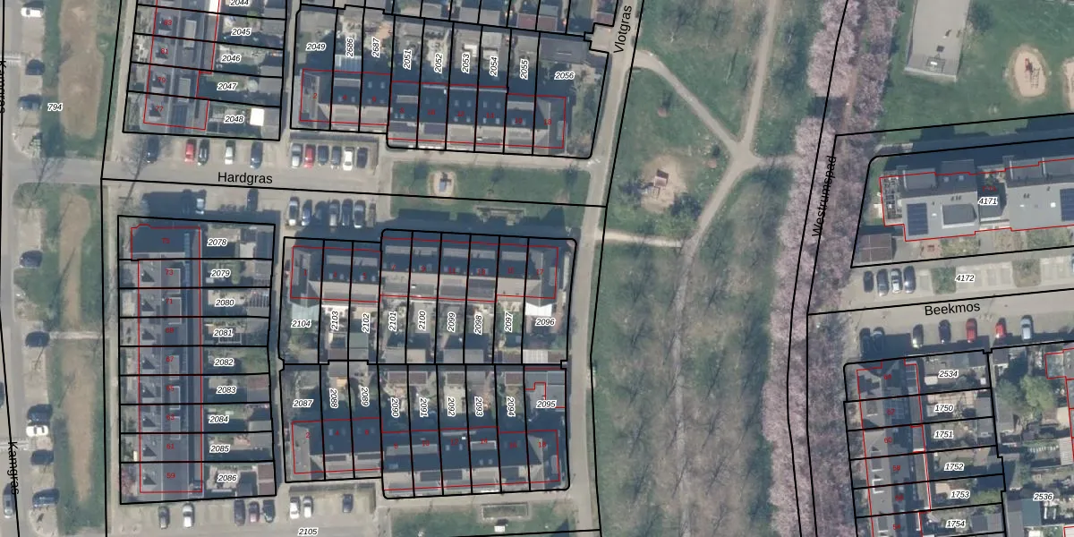 Gebruik de zoekbalk of klik op een perceel voor informatie over de adressen binnen dit perceel.