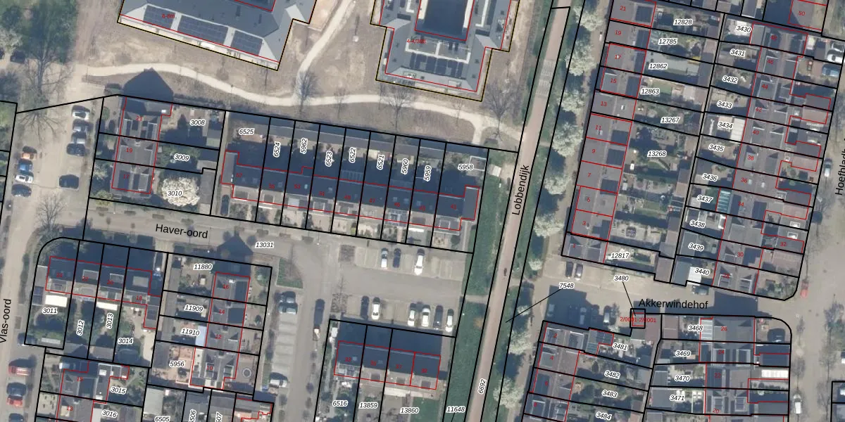 Gebruik de zoekbalk of klik op een perceel voor informatie over de adressen binnen dit perceel.