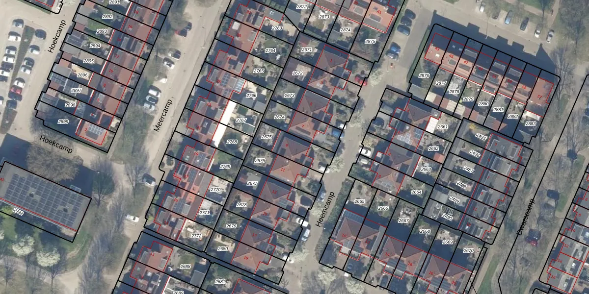 Het perceel waarop Heemcamp 9 staat heeft een oppervlakte van 220 m². Dit is een middelgroot perceel. De perceeloppervlakte wordt geregistreerd door het Kadaster. Gedetailleerde informatie over de maten van dit perceel kunt u vinden in het rapport Kadastrale kaart met maatvoering van Heemcamp 9.