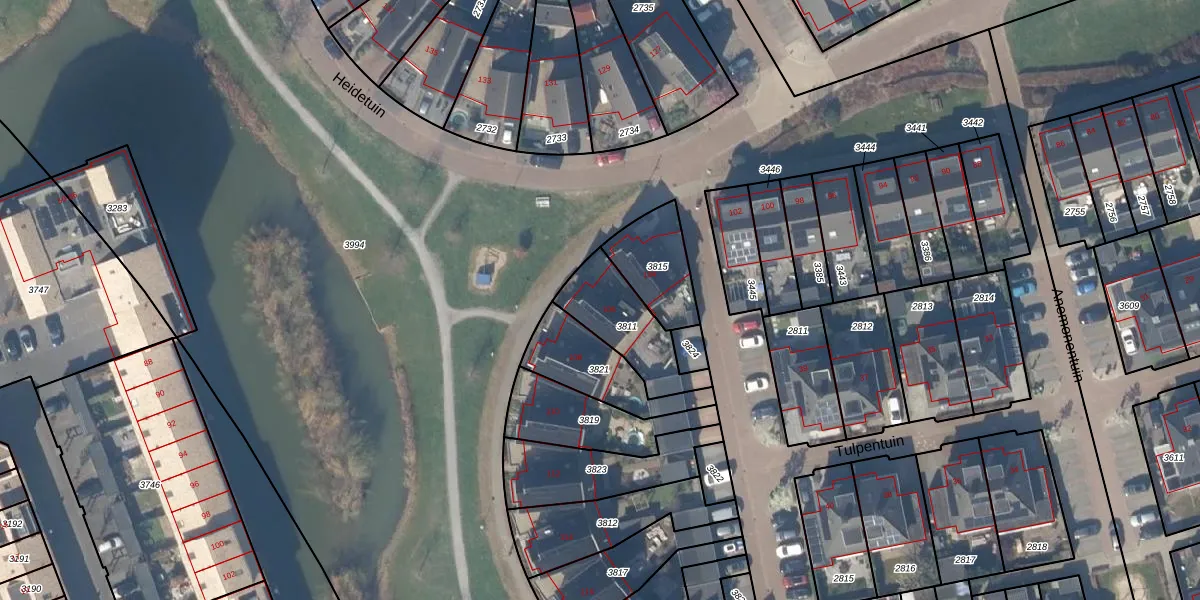 Heidetuin 106 is gelegen op kadastraal perceel HTN04B3811. Deze kadastrale aanduiding is uniek en wordt gebruikt door het Kadaster om eigendomsrechten en andere zakelijke rechten vast te leggen. Het perceel maakt onderdeel uit van de kadastrale gemeente Houten.