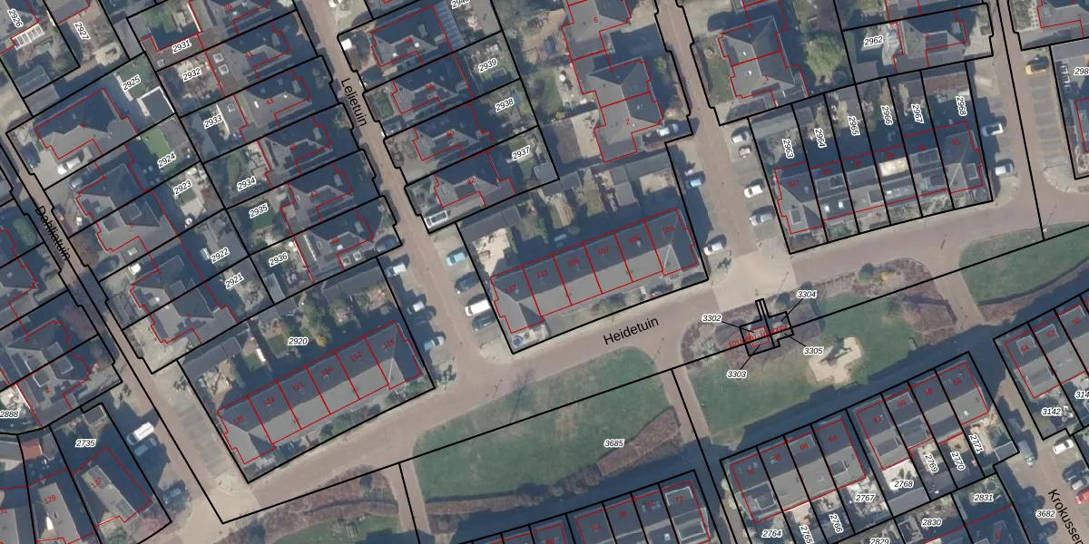 Het perceel waarop Heidetuin 111 staat heeft een oppervlakte van 3100 m². Dit is een zeer groot perceel. De perceeloppervlakte wordt geregistreerd door het Kadaster. Gedetailleerde informatie over de maten van dit perceel kunt u vinden in het rapport Kadastrale kaart met maatvoering van Heidetuin 111.