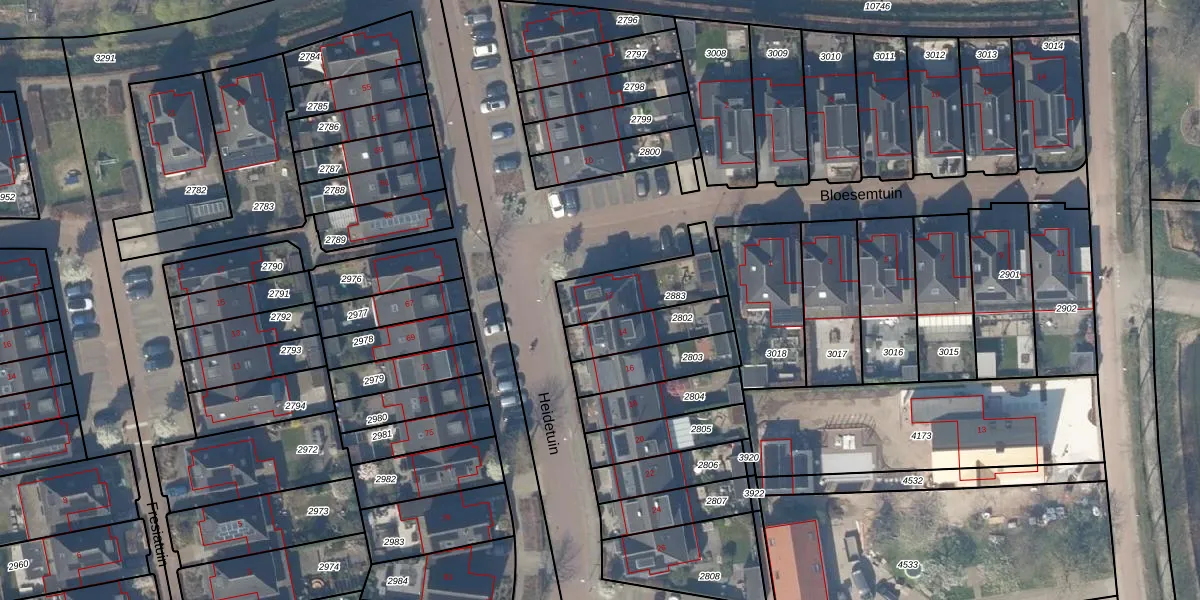 Het perceel waarop Heidetuin 12 staat heeft een oppervlakte van 227 m². Dit is een middelgroot perceel. De perceeloppervlakte wordt geregistreerd door het Kadaster. Gedetailleerde informatie over de maten van dit perceel kunt u vinden in het rapport Kadastrale kaart met maatvoering van Heidetuin 12.