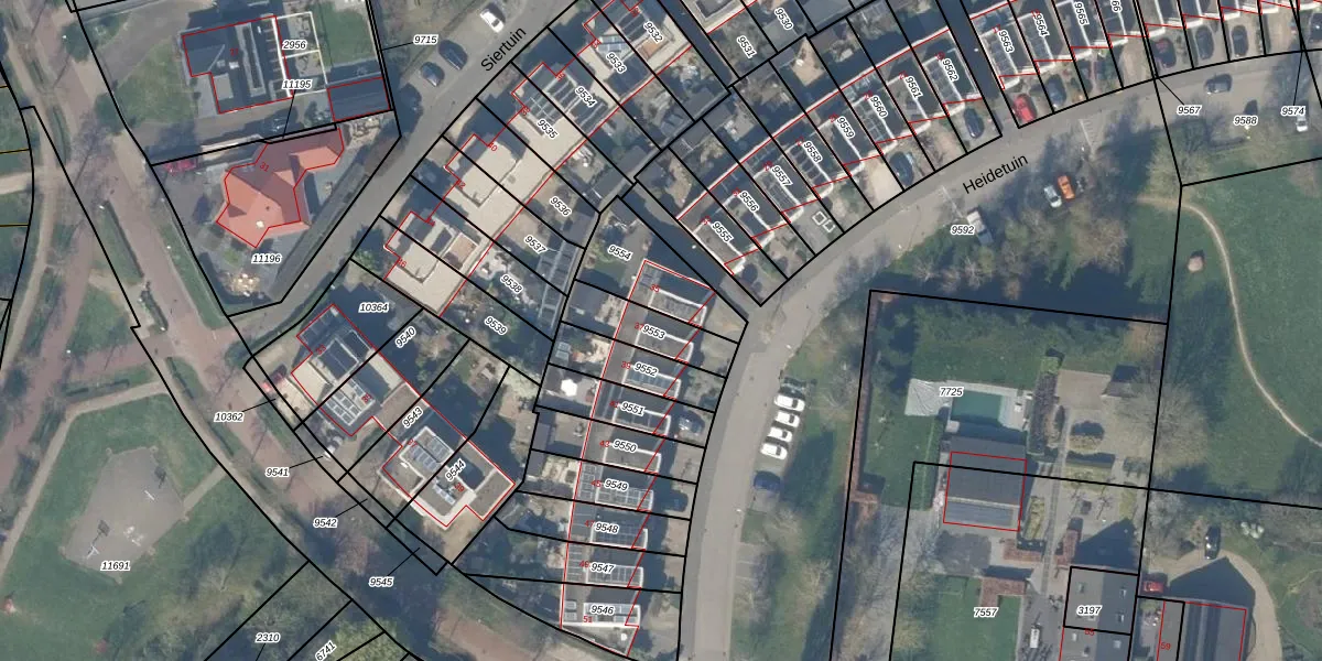 Het perceel waarop Heidetuin 37 staat heeft een oppervlakte van 163 m². Dit is een middelgroot perceel. De perceeloppervlakte wordt geregistreerd door het Kadaster. Gedetailleerde informatie over de maten van dit perceel kunt u vinden in het rapport Kadastrale kaart met maatvoering van Heidetuin 37.