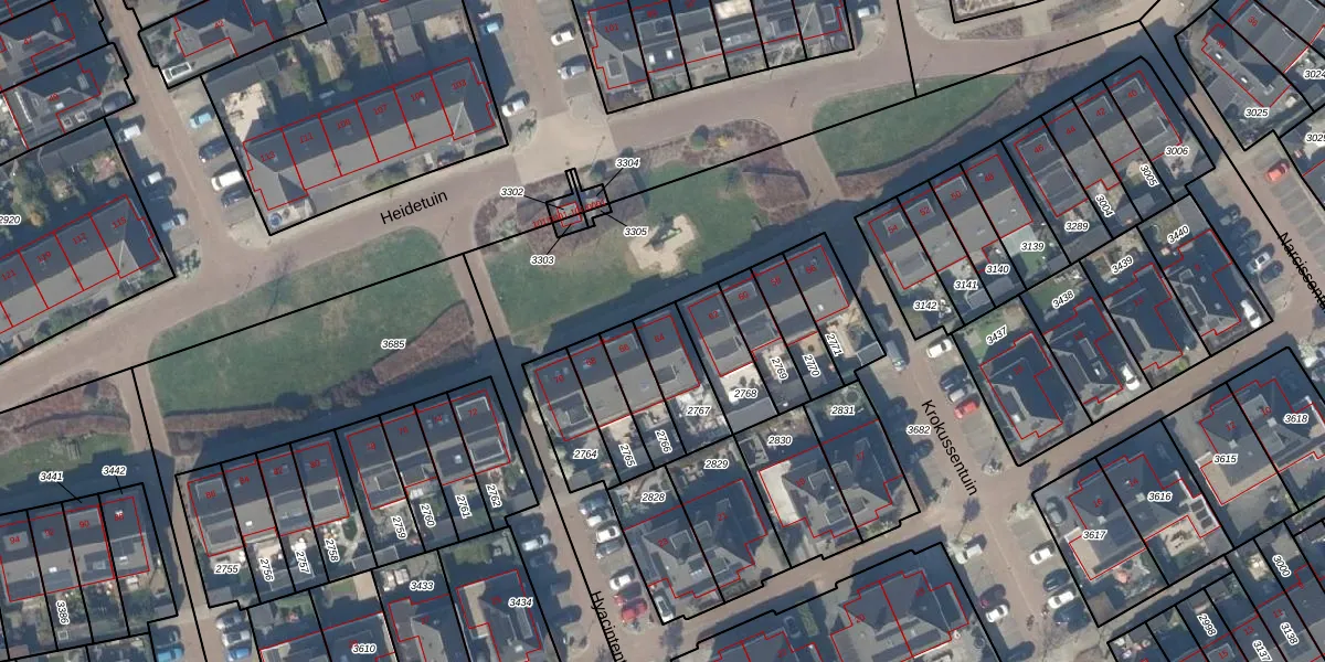 Het perceel waarop Heidetuin 64 staat heeft een oppervlakte van 161 m². Dit is een middelgroot perceel. De perceeloppervlakte wordt geregistreerd door het Kadaster. Gedetailleerde informatie over de maten van dit perceel kunt u vinden in het rapport Kadastrale kaart met maatvoering van Heidetuin 64.