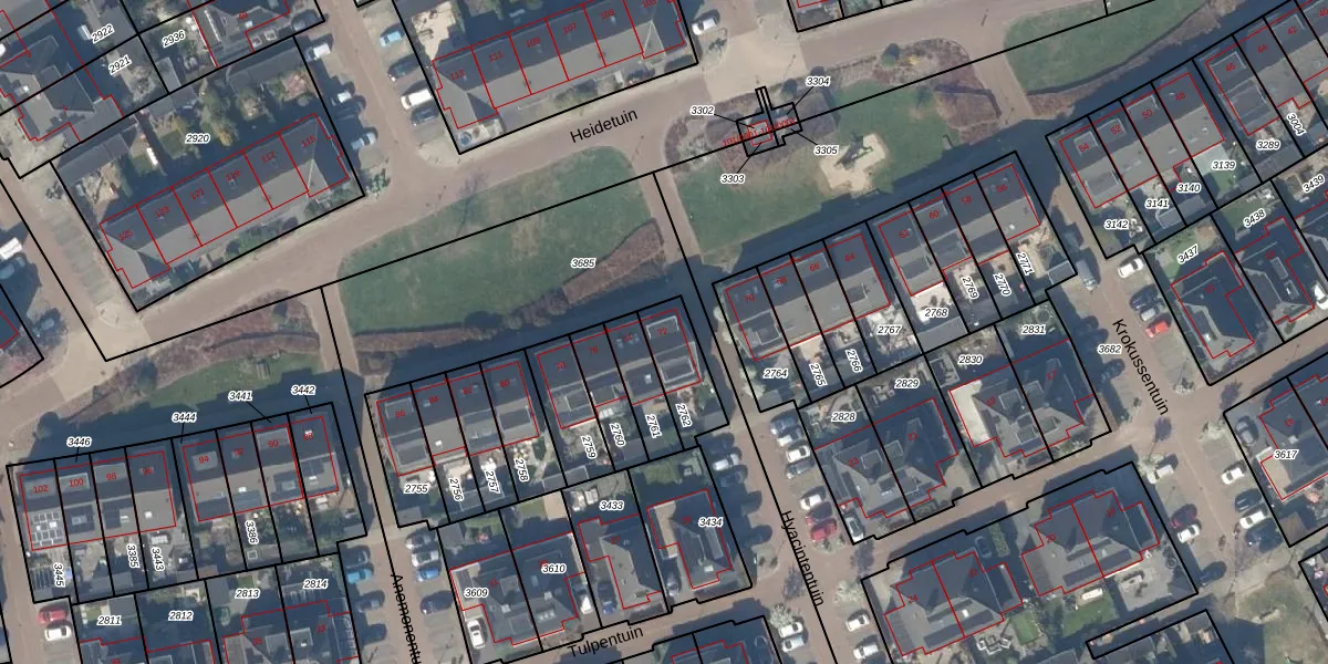 Het perceel waarop Heidetuin 72 staat heeft een oppervlakte van 155 m². Dit is een middelgroot perceel. De perceeloppervlakte wordt geregistreerd door het Kadaster. Gedetailleerde informatie over de maten van dit perceel kunt u vinden in het rapport Kadastrale kaart met maatvoering van Heidetuin 72.