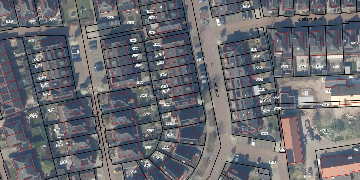 Het perceel waarop Heidetuin 75 staat heeft een oppervlakte van 136 m². Dit is een middelgroot perceel. De perceeloppervlakte wordt geregistreerd door het Kadaster. Gedetailleerde informatie over de maten van dit perceel kunt u vinden in het rapport Kadastrale kaart met maatvoering van Heidetuin 75.