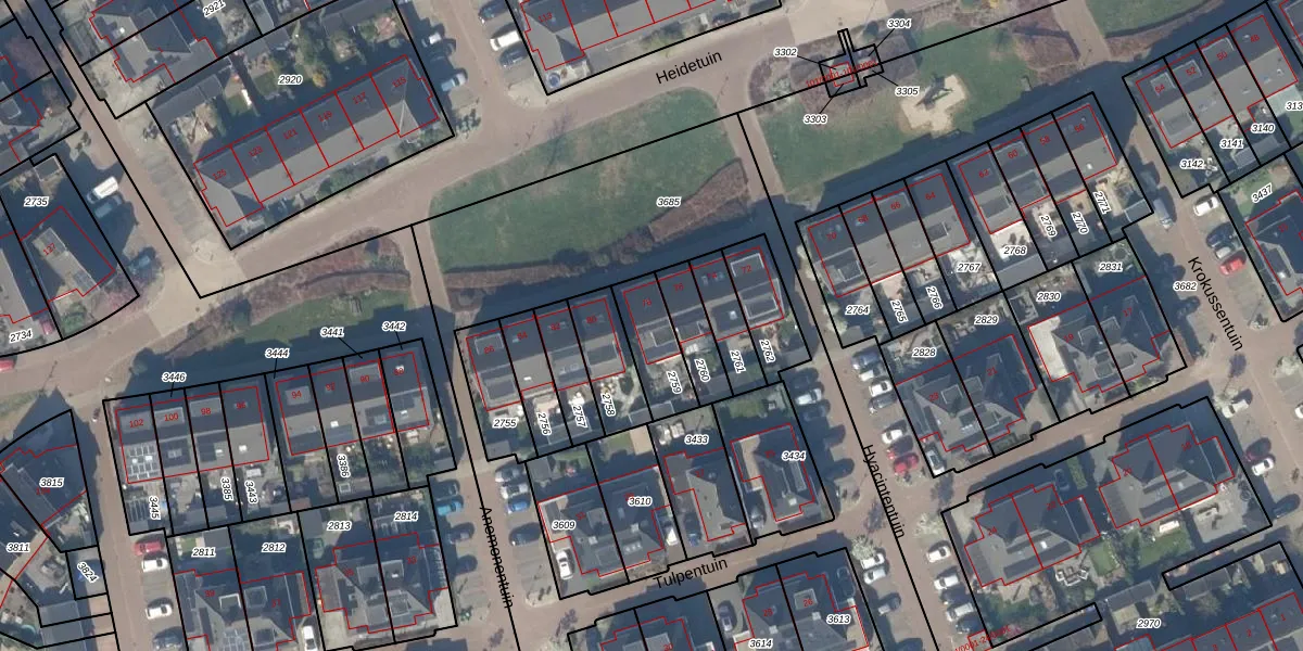 Het perceel waarop Heidetuin 78 staat heeft een oppervlakte van 160 m². Dit is een middelgroot perceel. De perceeloppervlakte wordt geregistreerd door het Kadaster. Gedetailleerde informatie over de maten van dit perceel kunt u vinden in het rapport Kadastrale kaart met maatvoering van Heidetuin 78.
