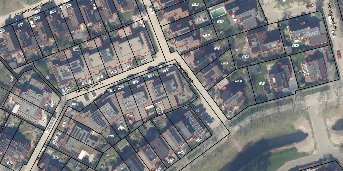 Hertogenborch 15 is gelegen op kadastraal perceel HTN04E1669. Deze kadastrale aanduiding is uniek en wordt gebruikt door het Kadaster om eigendomsrechten en andere zakelijke rechten vast te leggen. Het perceel maakt onderdeel uit van de kadastrale gemeente Houten.