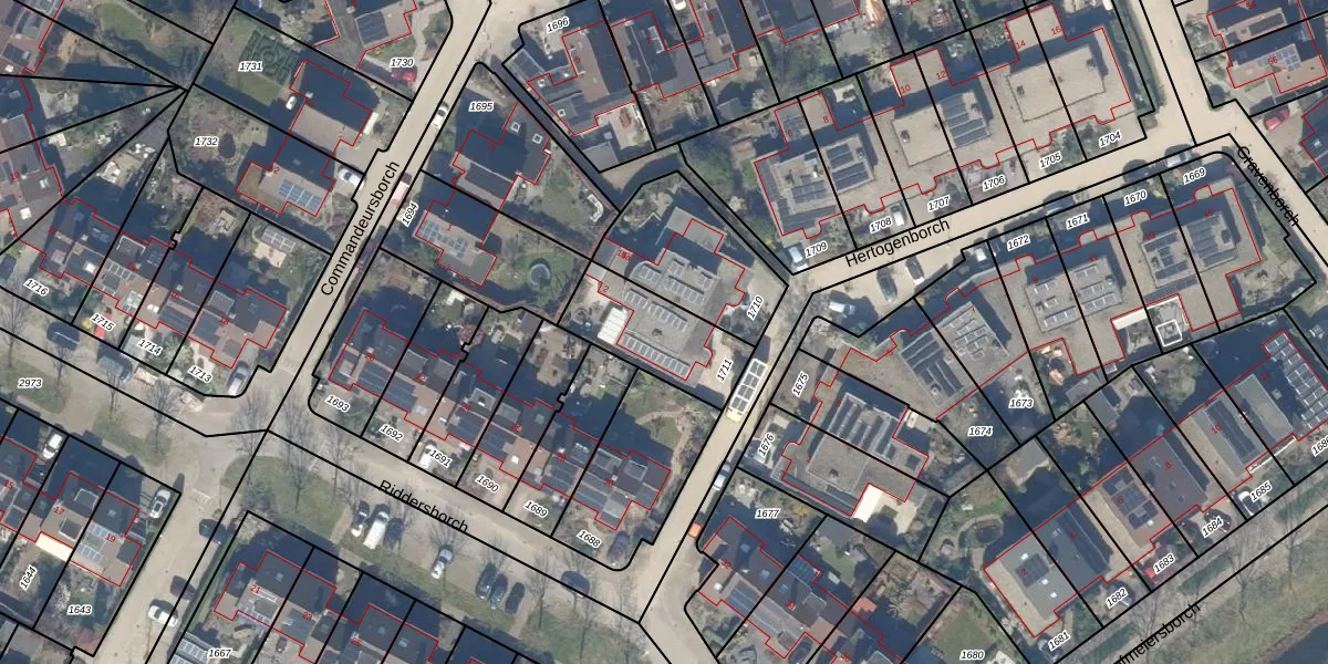 Hertogenborch 2 is gelegen op kadastraal perceel HTN04E1711. Deze kadastrale aanduiding is uniek en wordt gebruikt door het Kadaster om eigendomsrechten en andere zakelijke rechten vast te leggen. Het perceel maakt onderdeel uit van de kadastrale gemeente Houten.