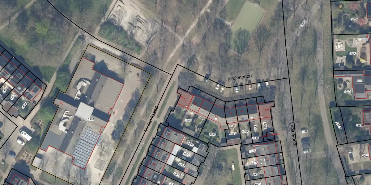 Herulenpoort 24 is gelegen op kadastraal perceel HTN04E3252. Deze kadastrale aanduiding is uniek en wordt gebruikt door het Kadaster om eigendomsrechten en andere zakelijke rechten vast te leggen. Het perceel maakt onderdeel uit van de kadastrale gemeente Houten.