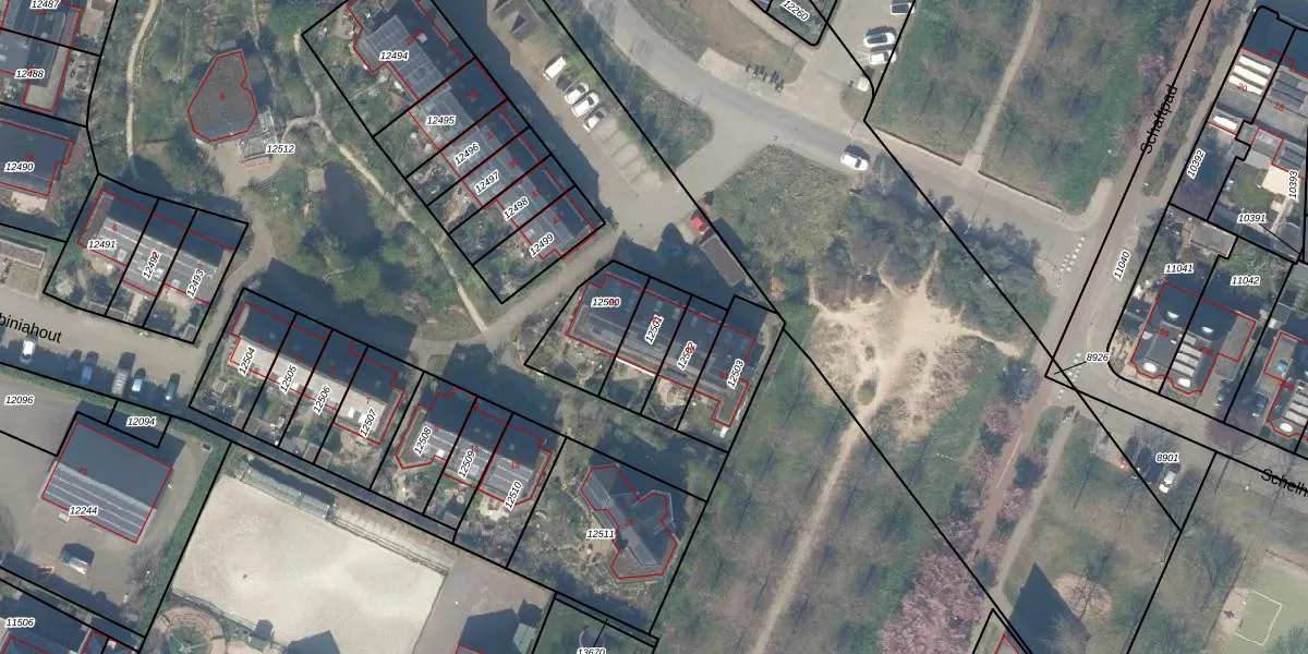 Het adres is gelegen op perceel 12501 in de sectie A en de kadastrale gemeente Houten. De kadastrale aanduiding is aldus HTN04-A-12501. Het perceel is kleiner dan gemiddeld in Houten. Het perceel is 140 m² groot, terwijl het gemiddelde ligt op 2873 m². De grootste perceeloppervlakte in de kadastrale gemeente is 45,3 ha. De kleinste oppervlakte bedraagt 0 m². Op het perceel bevinden zich geen andere adressen. De huidige grenzen van het perceel zijn digitaal in de Basisregistratie Kadaster (BRK) geregistreerd op 03-04-2015.